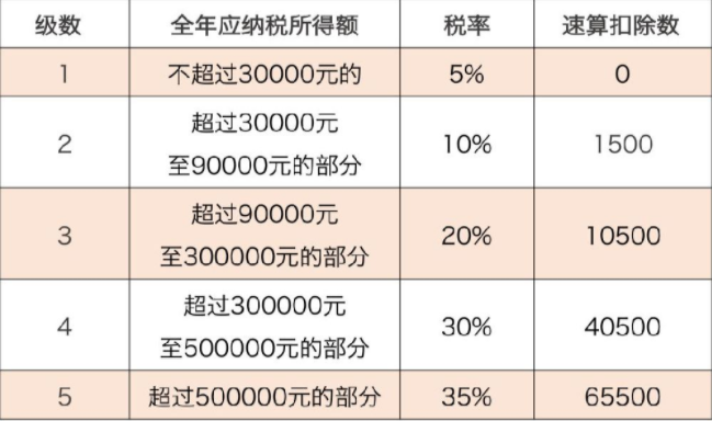 个体工商户的生产、经营所得和对企事业单位的承包经营、承租经营所得适用的个人所得税税率表